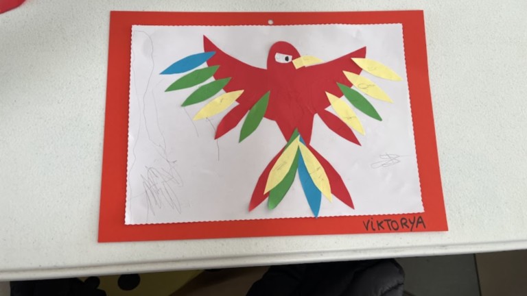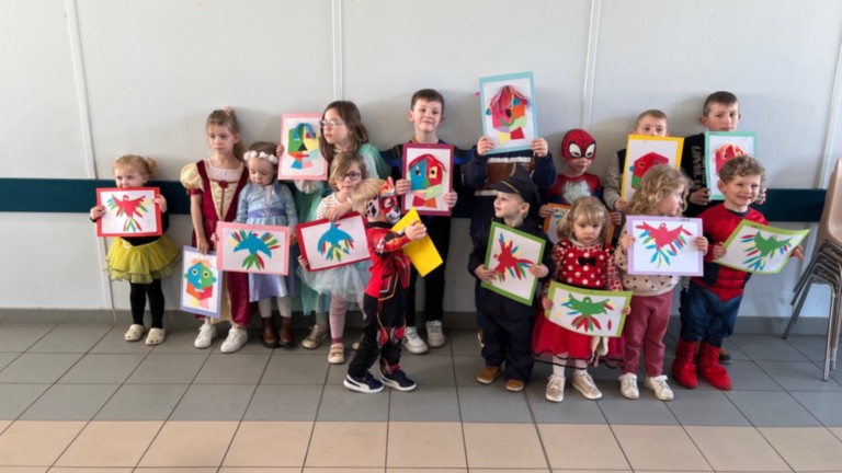Deux ateliers créatifs, animés par Martine, ont captivé l’attention de tous. Les plus grands se sont lancés dans la réalisation d’un tableau d’art contemporain, laissant libre cours à leur imagination à travers le collage de formes géométriques. Concentration et créativité étaient au rendez-vous. Les plus petits, quant à eux, ont confectionné un perroquet en collant soigneusement des plumes colorées. Les mamans ont volontiers mis la main à la pâte, soufflant quelques idées et aidant à lancer les réalisations. À l’arrivée, le résultat était au rendez-vous : de belles créations et une photo collective pour immortaliser l’instant.