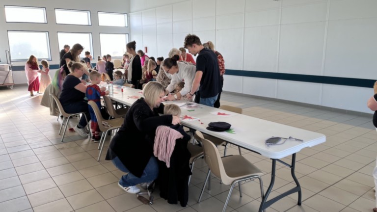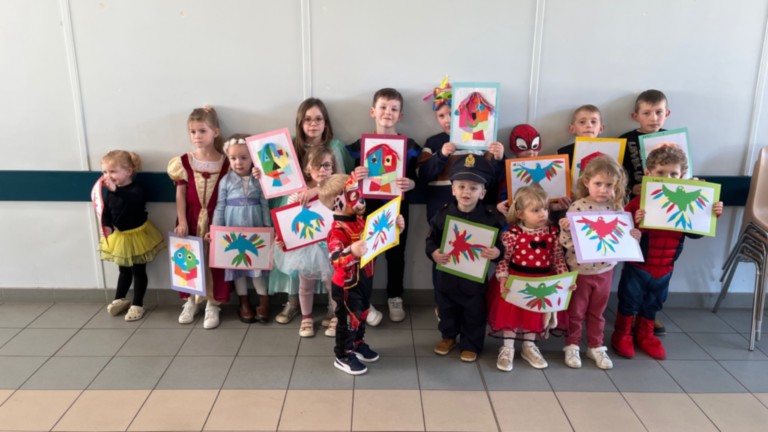 Deux ateliers créatifs, animés par Martine, ont captivé l’attention de tous. Les plus grands se sont lancés dans la réalisation d’un tableau d’art contemporain, laissant libre cours à leur imagination à travers le collage de formes géométriques. Concentration et créativité étaient au rendez-vous. Les plus petits, quant à eux, ont confectionné un perroquet en collant soigneusement des plumes colorées. Les mamans ont volontiers mis la main à la pâte, soufflant quelques idées et aidant à lancer les réalisations. À l’arrivée, le résultat était au rendez-vous : de belles créations et une photo collective pour immortaliser l’instant.